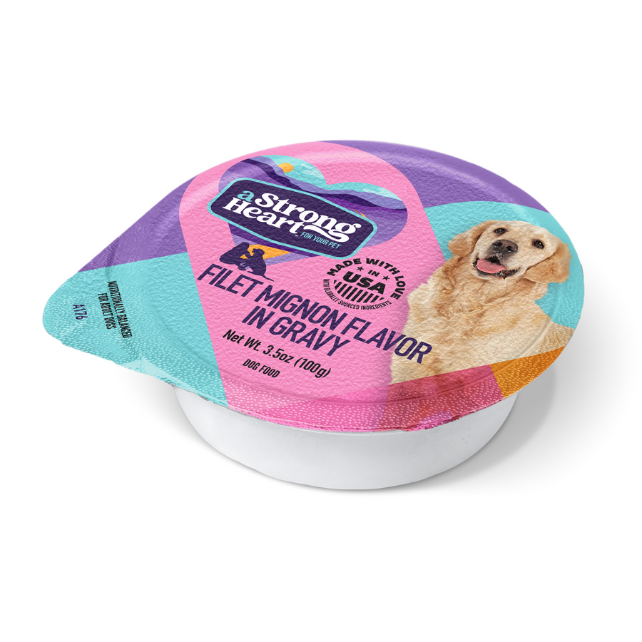 Discover the joy of gourmet dining for your dog with our gourmet Wet Dog Food Cups. Each 3.5oz cup is packed with flavorful, high-quality ingredients like Grilled Chicken, Filet Mignon, Turkey, and Porterhouse Steak. Designed for complete nutrition and irresistible taste, our wet food cups are perfect for every meal. Easy to serve and delightful for your pet, they're the ideal blend of convenience and culinary excellence. Treat your dog to the best in taste and health with our gourmet collection.