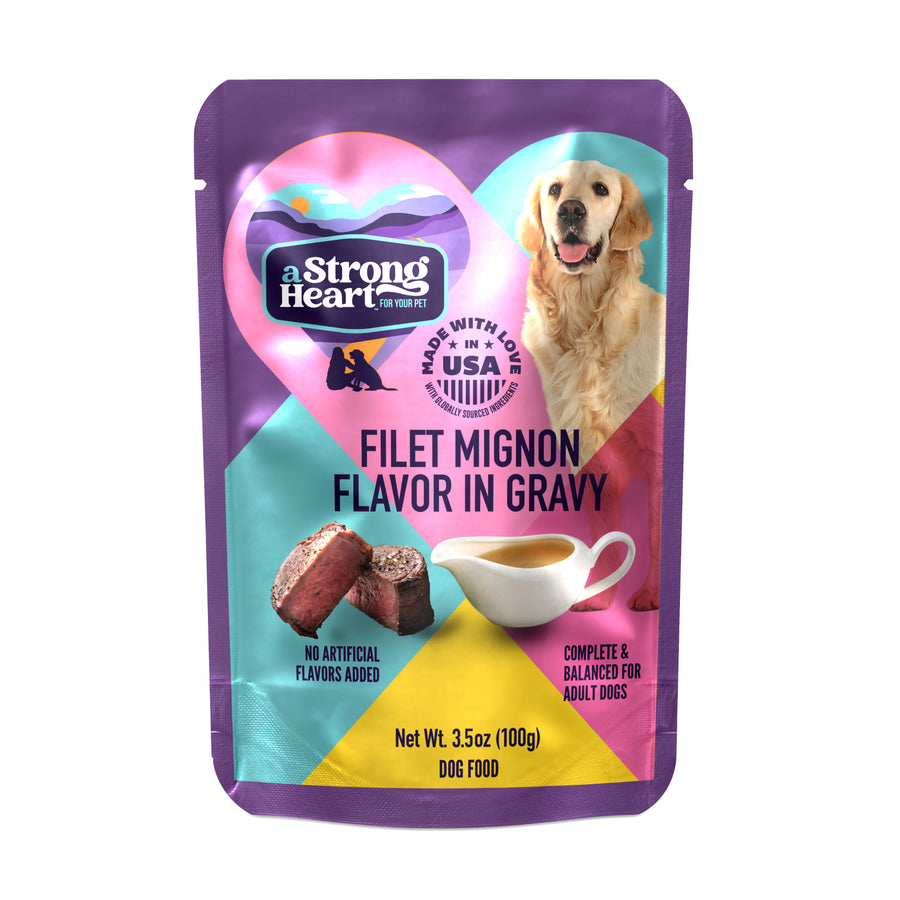 Indulge your furry friend in the ultimate dining experience with our savory selections collection of Wet Dog Food Pouches. Each 3.5oz pouch offers a blend of rich flavors and complete nutrition. From the luxurious Filet Mignon in Gravy to the comforting Chicken Casserole, and from the hearty Beef and Vegetable Stew to the classic Chicken in Gravy, our range caters to every taste.